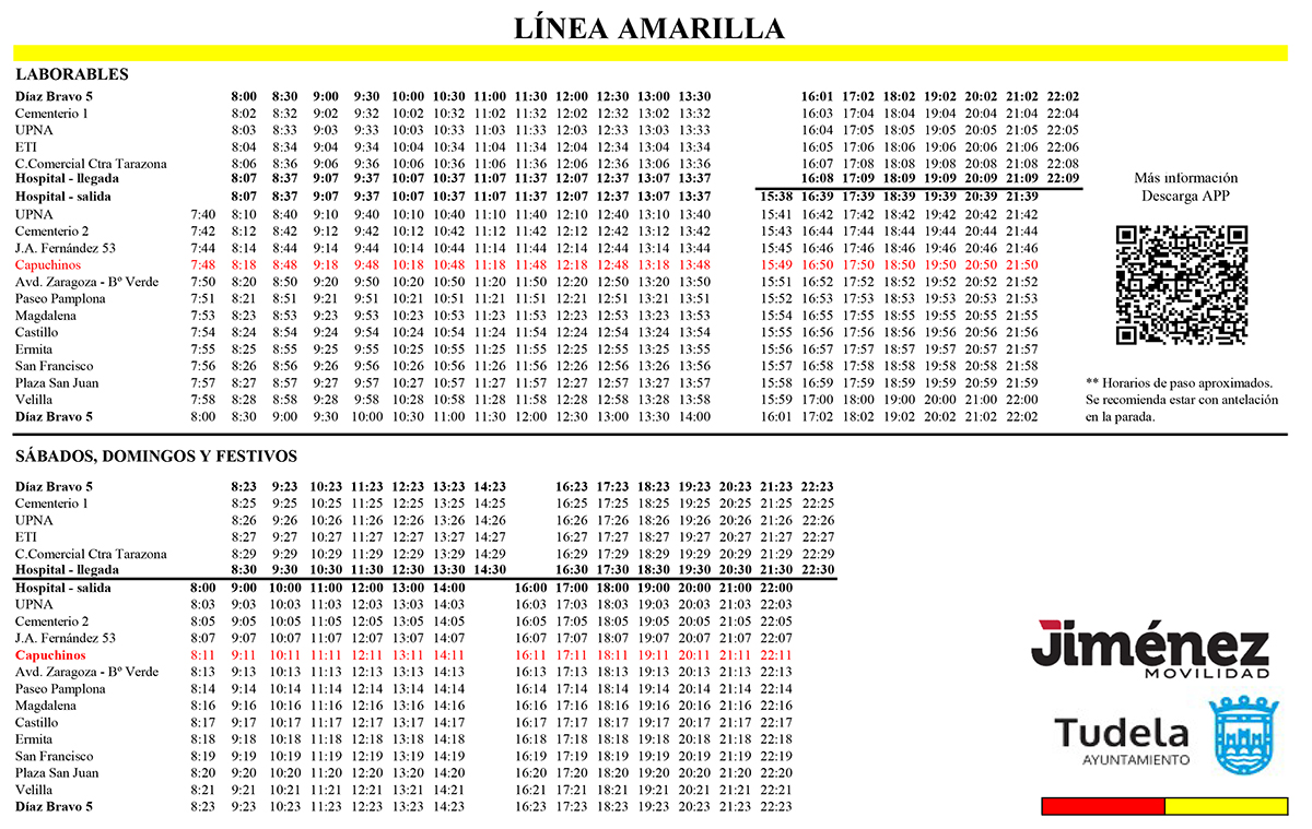 ATENCIÓN: Las horas de paso son por defecto. Puede que el autobús sufra retraso debido a las condiciones de tráfico, pero no pasará antes de la hora señalada.